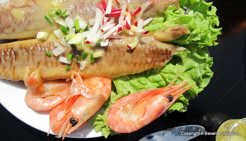 Smoke Houses are the main point of refreshment on the island, and of course Smoked Herring is the traditional order of the day… Being near Gudshejm, we had to order “Sol over Gudhjem”, a local Smorrebrod of smoked herring on rugbrod, served with radish, chopped onion and topped with a raw egg yolk; quite appetising compared to the surrounding school trip’s packed lunches, which seemed to consist of whole smoked herrings with rugbrod, pork fat and salt, but they were all tucking in!