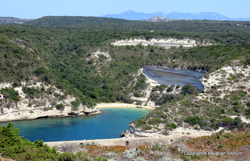 The Citadel is divided between the old town, and a few ancient military fortifications towards the end of the peninsula, which are worth exploring too. Walk past the covered market place (there’s a gorgeous shady courtyard to the back of here if you are in need!), through the archway with the sky blue door, and out past the huge abandoned barracks (quite eerie, and home to the French Foreign Legion once upon a time) and the Church of St Dominique. Follow the road through the car park, and you will be rewarded with some spectacular views back across the old town, and down to Bonifacio Harbour…