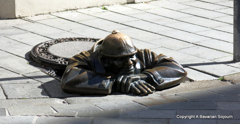 Keep an eye out for the street art on show here too, there’s some in the main square near the pretty Jesuit Church, and you can’t miss the man half out of an imaginary man hole just around the corner from here (beware the ice-cream shop close to this statue who charges a lot for a gnome sized amount of ice-cream)…