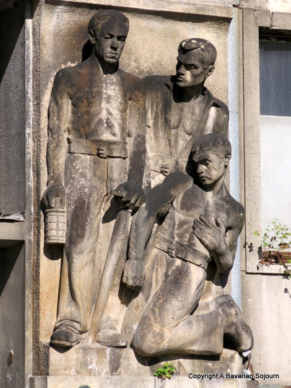 Then on to St.Elizabeth’s, Bratislava’s famous Blue Church. It almost matched the colour of the sky that day, and whilst the Small People inspected all the outside details (and decided it looked like a cake), I took plenty of pictures of both that, and the former (now derelict) hospital opposite, with its impressive communist worker statues guarding the doorways.