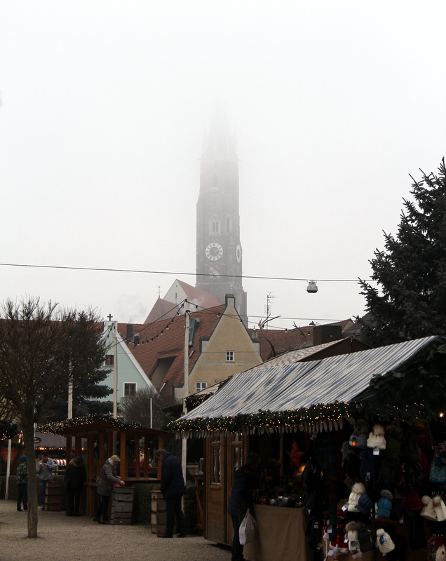 Making the most of Mr R’s dwindling garden leave (in which he has done little gardening!) we decided to make the most of the atmospheric weather conditions, and head to Landshut’s Christmas Market – somewhere I have visited in the past (with the Small Boy on his class trip a few years ago in temperatures of -16!!), but he hasn’t. On the banks of the Isar, this medieval town (complete with castle) is full of gothic architecture, and the square between the church of St Jodoc and the cathedral of St Martin is a lovely setting for a Weihnachtsmarkt…