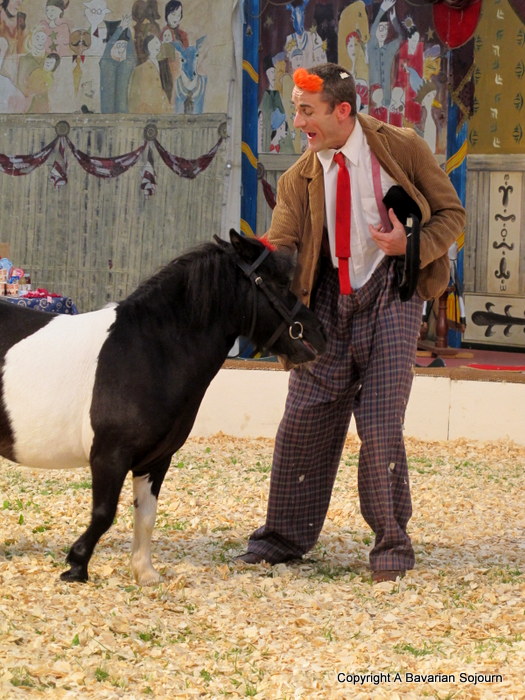 I am never a fan of the “elephant featuring” type of circus, although there are a few of the more domestic animal type here, and the main stars of the stage are a goose, a couple of dogs, 3 horses, and a pony and some doves. There’s also a bear, but he’s not real. Just don’t tell anyone.