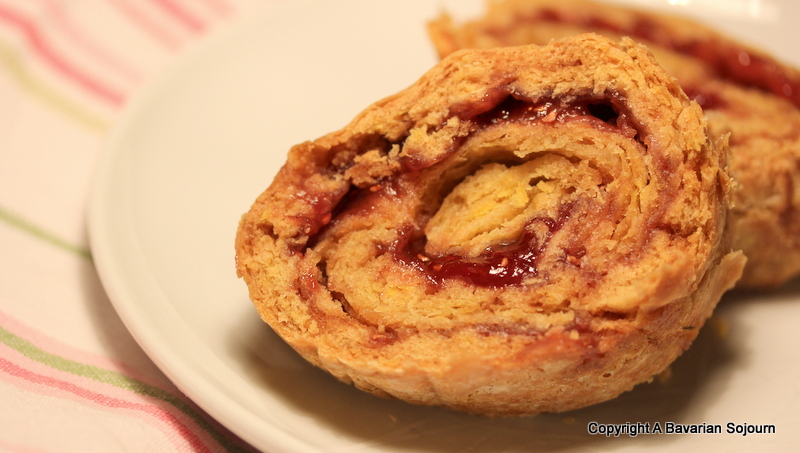 And finally, as a challenge, and because I have never made one before, I attempted the Jam Roly Poly (vegetable suet available at British Allsorts in Munich) and was happy with how it turned out.