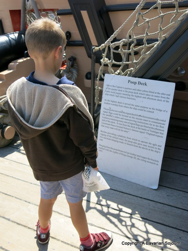 The Royal Navy’s most famous wooden Georgian War Ship will take you a just over an hour to scrutinize thoroughly in the company of two tiny history enthusiasts, taking into account the scrambling up and down of many different levels (watch your heads!) and imagining what life must have been like back then in the days of the Battle of Trafalgar and beyond aboard such a vessel…