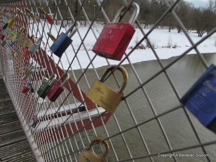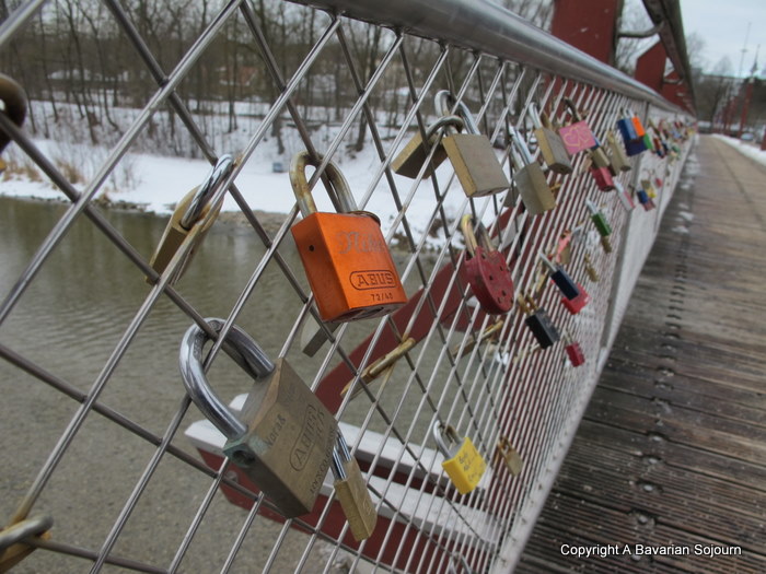 The bridge near Munich Zoo looks like it is quite new to the tradition of securing padlocks to something to signify a couples never-ending love…