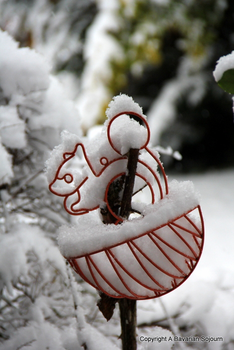 Wow! Does seem early, but then again nov next week… Wonderful picture and like your squirrel planter very much! There’s something so tranquil about snow, but doesn’t always fill me with joy as we live at the top of a very steep hill!