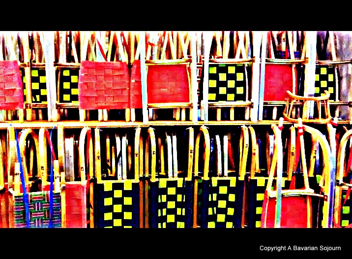 They are traditional wooden sledges. Used for careering down the mountains here! Lots of fun, but not for the faint hearted! :D