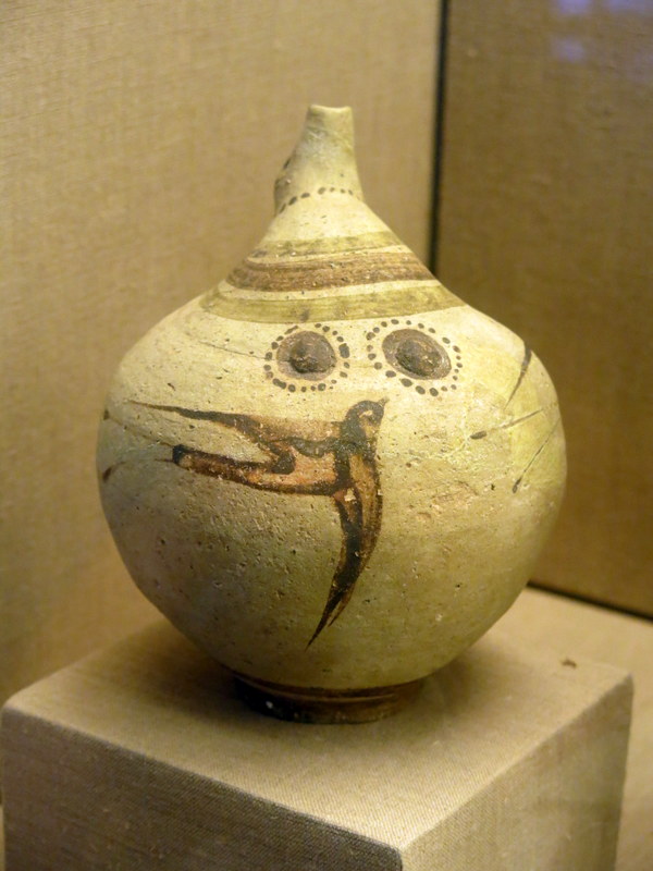Our morning of wine appreciation was followed by a little further cultural admiration at the insistence of the Small Girl – an hour well spent at the Museum of Prehistoric Fira – it’s not big, you don’t really need that long – but you will see some of the most beautiful wall paintings taken from sites such as Akrotiri and Ancient Thira, and perhaps most precious of all – a tiny golden Ibis found at Akrotiri – which precedes even that by thousands of years.