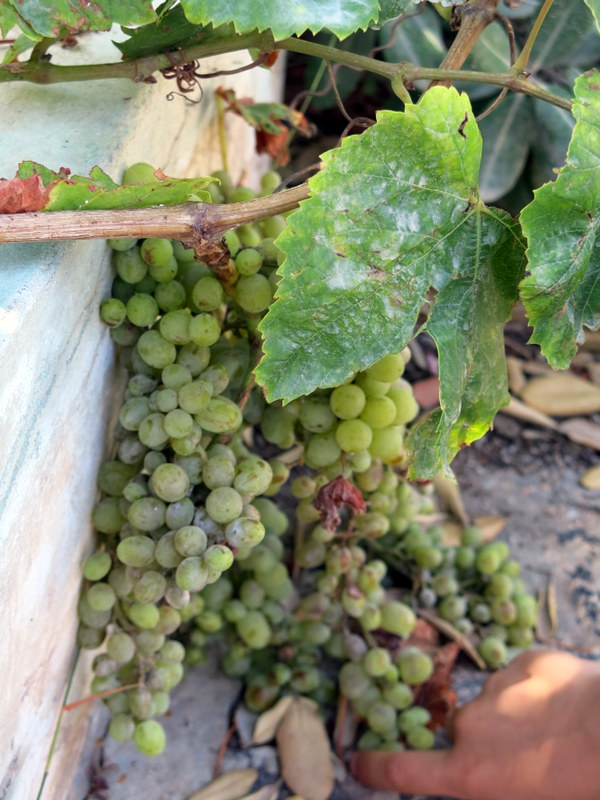 The vines themselves are quite beautiful when you look at them closely. Trained into a basket shape, the grapes grow on the inside to protect them from the harsh island winds. This also helps the vines retain moisture from the sea mists that sweep in from time to time (more on them later!)…